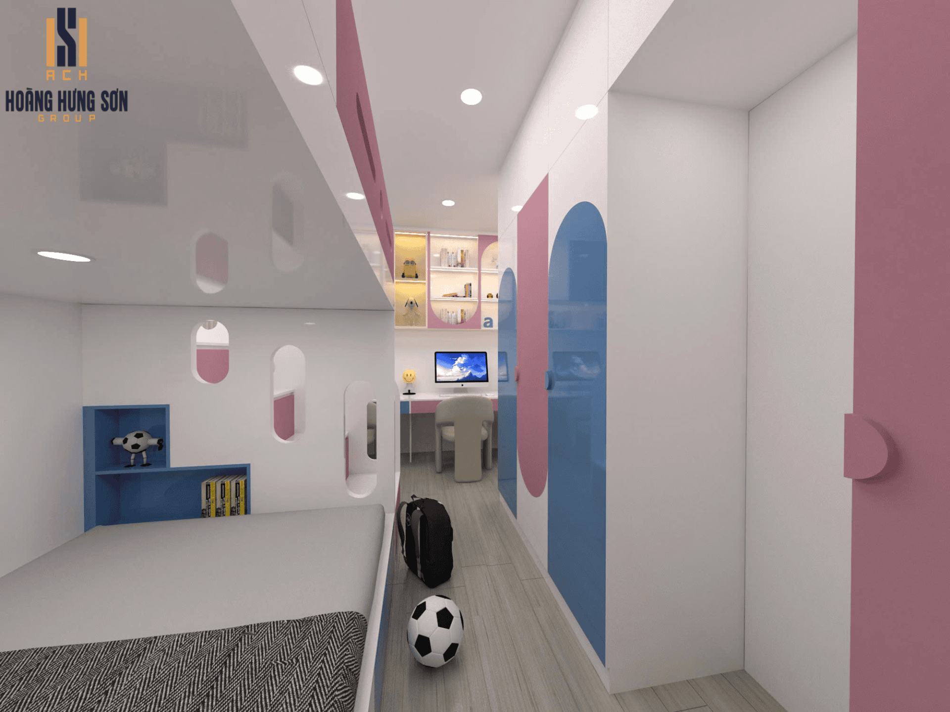 - Không gian bố mẹ và bé được bố trí thông minh: vừa riêng tư, vừa gần gũi để tiện chăm sóc nhưng vẫn đảm bảo tính cá nhân cho mỗi thành viên.